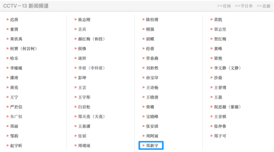 近期,央视网再度更新了主持人名单。其中,CCTV13新闻频道,郑新宇上榜。